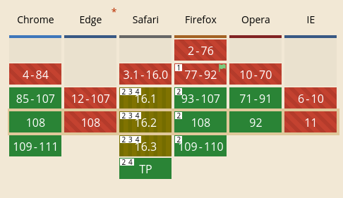 This is the support of the AVIF image format across all major browsers. At first, it looks great. Chrome, Safari, Firefox, and Opera all support the image format. The major one that’s missing is Edge, but that’s not a big deal. Except for that 2 in the corner. What that means is that browser doesn’t support animated AVIF images. So unless you’re using Chrome or Opera, you’re out of luck. Overall, it’s a great format, but I would wait for other browsers to add support.